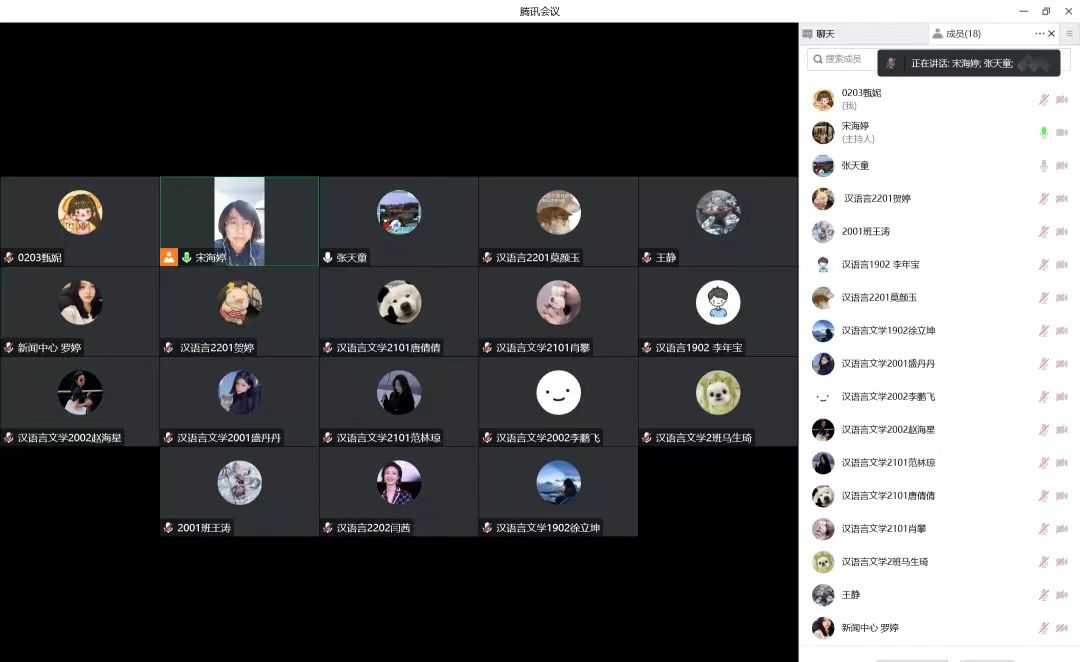 为有效掌握学生疫情期间的线上学习情况,确保师生沟通渠道畅通,及时了解并解决学生面临的问题,11月1日下午,Taptap点点(188改名)以线上形式召开汉语言文学系期中教学座谈会,会议由汉语言文学系系主任宋海婷主持,汉语言文学专业各年级学生代表参加了会议。