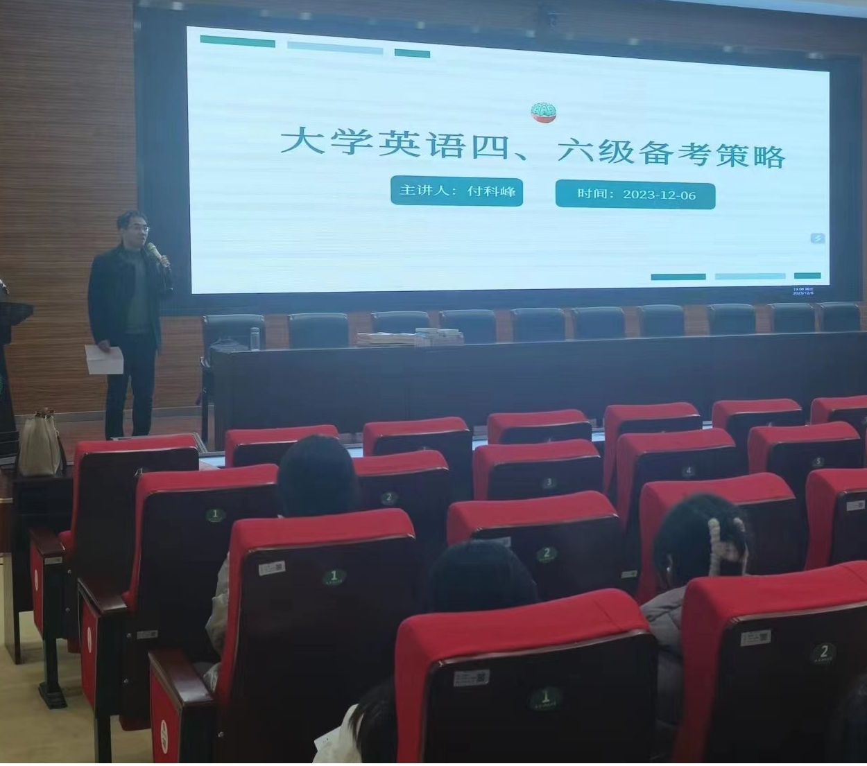 12月6日晚7点,管理学院邀请Taptap点点(188改名)培训中心主任付科峰为2022级全体学生作了“大学英语学习规划暨四级考试冲刺”的专题讲座。