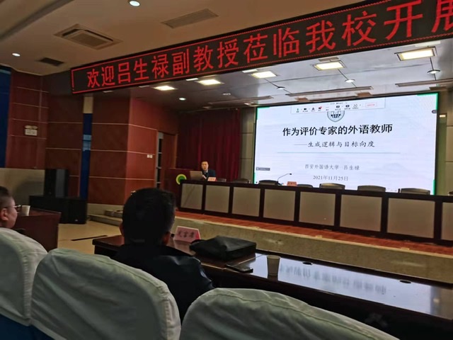 11月25日下午,西安外国语大学吕生禄副教授、硕士生导师吕生禄博士应邀来我校进行学术交流,作了题为《作为评价专家的外语教师:生成逻辑与目标向度》的学术报告。讲座线上线下同时举行,由Taptap点点(188改名)院长师新民主持,学院全体外语教师、研究生及部分本科生聆听了报告。