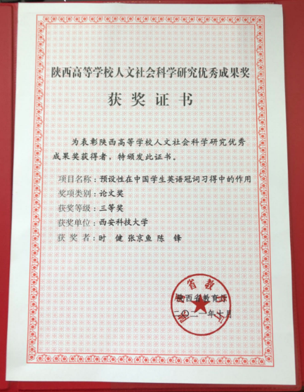 时健副教授及其导师张京鱼教授、陈锋博士合作发表在《现代外语》(2019年第3期)上的论文“预设性在中国学生英语冠词习得中的作用”采用对话强制选择提取实验来考察预设性在中国学生英语冠词习得中的作用。结果显示:以部分性(partitivity)形式体现的预设性(presuppositionality)在中国学生冠词选择中有显著主效应,辖域和特指性无主效应,但辖域和预设性有交互效应;特指性也起作用,而预设性的干扰作用大于特指性的。本研究发现预设性参数对中国英语学习者冠词习得的干扰作用,和Ko, Ionin &Wexler (2010) 在韩国英语学习者冠词习得实验中的结果一致。基于此,该研究提出了包括特指性、定指性和预设性三值的波动假说,即修正的波动假说(Modified Fluctuation Hypothesis),修正了Ionin, Ko &Wexler (2004) 提出的仅包括特指性、定指性二值的英语冠词二语习得波动假说(Fluctuation Hypothesis)。