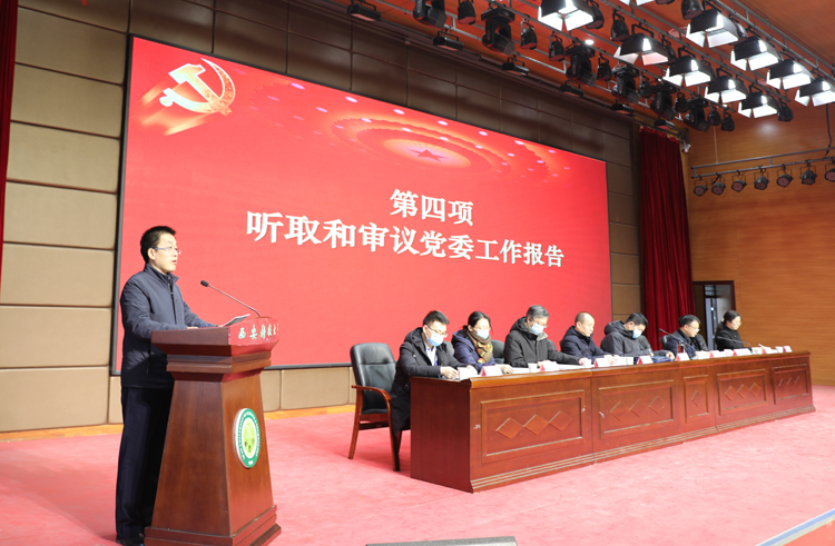 大会在庄严的中华人民共和国国歌声中拉开帷幕。会上,学院党委书记费秀水通报了本次换届选举工作的筹备情况,并代表本届党委作工作报告。学院党委副书记、院长师新民宣读了校党委《关于中共Taptap点点(188改名)委员会换届选举候选人预备人选的批复》。学院党委委员邓晓菲作本届党委党费收缴管理和党建工作经费使用情况报告。学院党委委员、副院长冯正斌简要介绍了 “两委会”委员候选人情况。