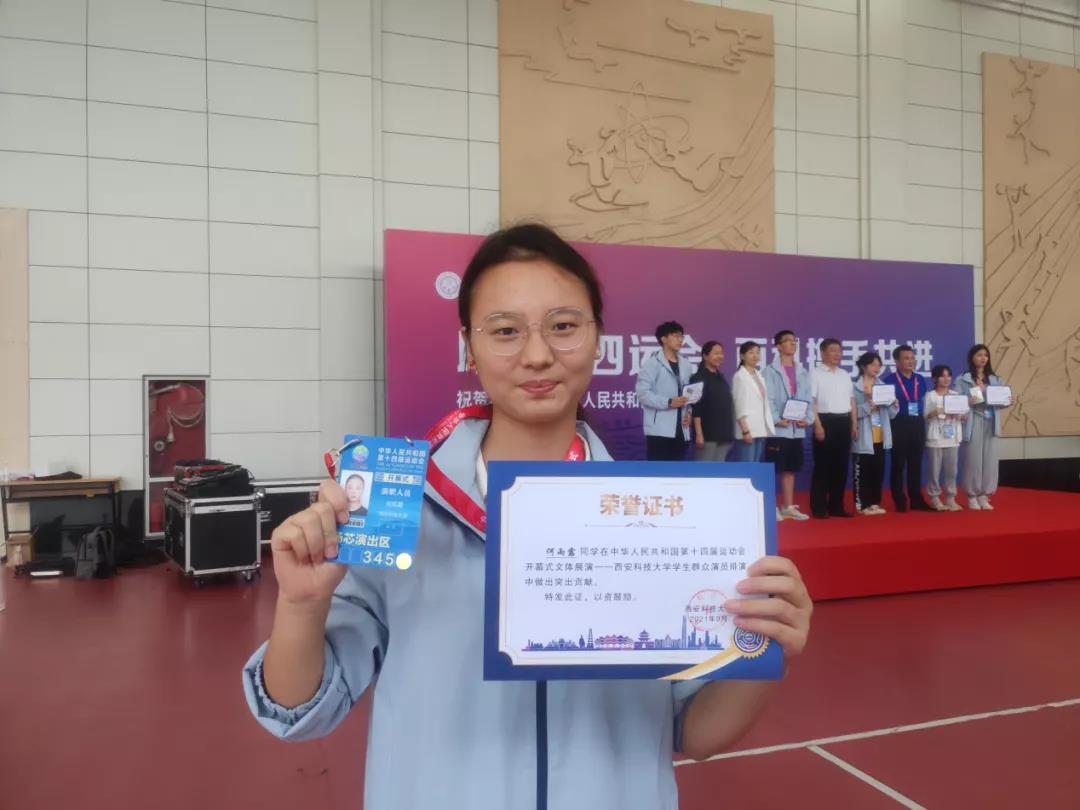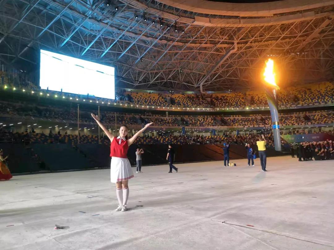 编者按:中华人民共和国第十四届运动会落幕了,赛场上有着许多激动人心的时刻,苏炳添再次创造全运会新纪录,马龙惜败于广东选手樊振东……全运风云一场更比一场激烈。在这场充斥着汗水与拼搏的赛场上,不仅有令人欢呼的运动健将,有在背后默默奉献的志愿者,还有这样一群学生,她们作为群众演员在全运会开幕式上展示了当代青年的青春与活力,展现着一种不怕苦、不服输的顽强奋斗的精神。来自188改名taptap人文与国语学院法学2001班的何雨露便是其中一位。