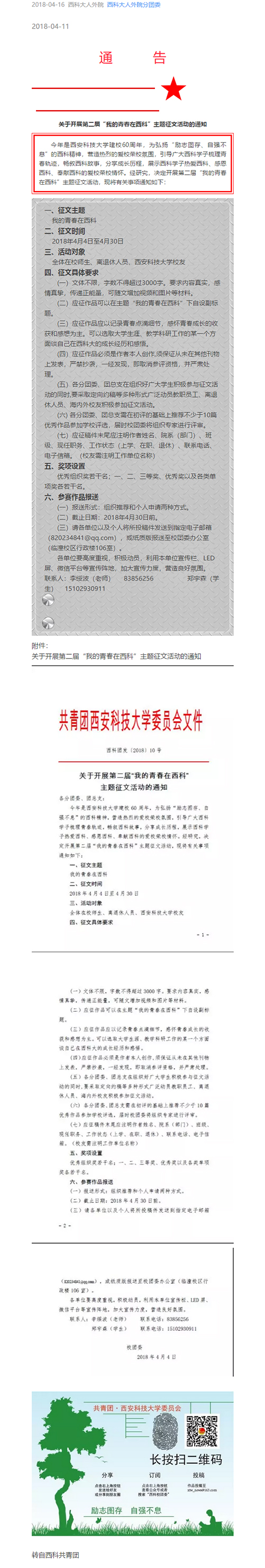 “我的青春在西科”主题征文活动通知