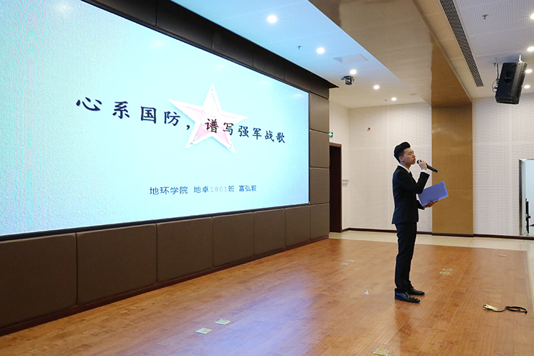 此次比赛历时半个多月,经过了院级初赛、校级复赛的重重选拔,共有12位选手来到了决赛的舞台。比赛现场,选手们围绕新时代强军战歌、国家安全与大学生成长发展、国防三线建设等主题依次上台演讲。选手们慷慨激昂、意气风发,以动人的事迹、饱满的热情与现场观众一起回顾新中国辉煌70载,表达了当代大学生热爱国防、投身国防、建设国防的情怀与担当,现场氛围高涨。赛后,张剑从演讲技巧、选题内容等方面对选手的现场表现进行了精彩点评。