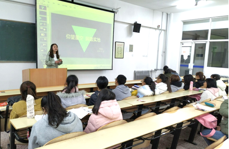 11月12日晚,英语1802班“仰望星空,脚踏实地”主题班会在3教203多媒体教室举办。班主任吉科利主持,优秀学长代表英语1602班刘纪凤、郭欢喜与英语1802班参加了本次班会。