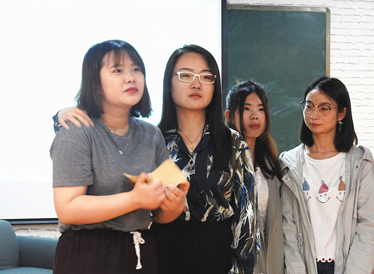 “青龙学习小组”推荐的是童话诗人顾城,一出场便熄灭了所有的灯光,用一盏温暖的烛台营造了温暖静谧的氛围。朗诵者带领同学们走进顾城的童话世界,《雪后》里有小松鼠、狐狸,《年轻的树》里有夜空、幻梦,《我不知道怎样爱你》里有青鱼、牡蛎……悦耳动听的朗诵与纯洁无暇的诗行把交流会妆点得楚楚动人。