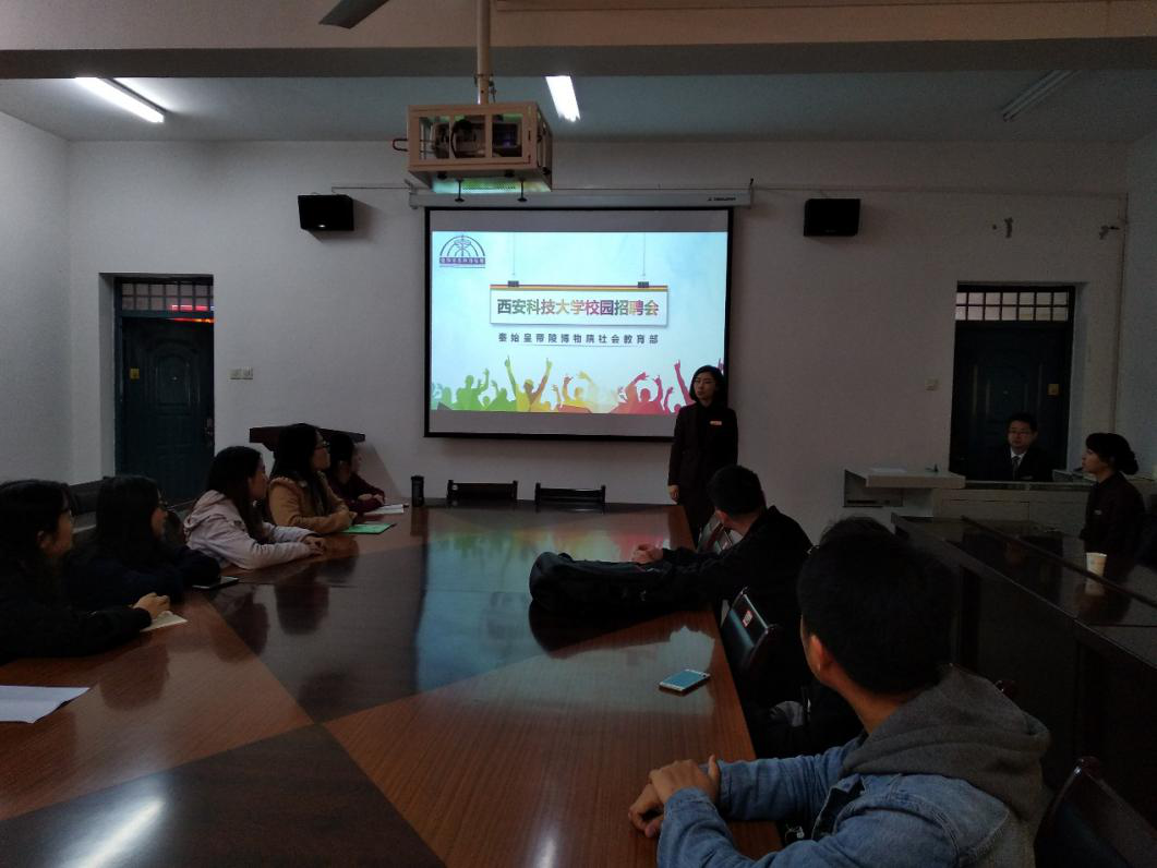 3月20日上午,秦始皇帝陵博物院社会教育部188改名taptap校园招聘会在Taptap点点(188改名)会议室举行。社会教育部农主任简要介绍了秦始皇帝陵博物院以及社会教育部的概况、招聘岗位、应聘条件以及福利待遇等,部门业务骨干我院16届毕业生齐文静给学弟学妹们分享了她从在校期间去博物院实习到现在已经成长为业务骨干的成长经历,另一名博物院工作人员也分享了他8年的工作经历和感悟。随后,农主任对学生咨询的问题进行解答。在招聘会上,部分毕业生达成就业意向。会后,我院14级辅导员李银亮与用人单位进行了沟通和交流,希望进一步加强就业合作。