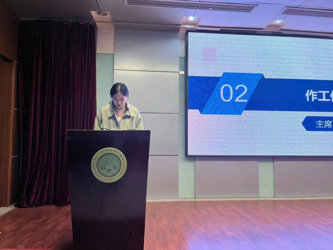 会上,秘书长高茹宣读了新一届团委学生会干部名单,学生会主席周鸿汝从思想政治引领、组织建设、校园文化活动开展等方面对团委学生近一年的工作进行了总结,办公室主任莫颜玉、组织部干事杨子乐分别进行了交流发言。