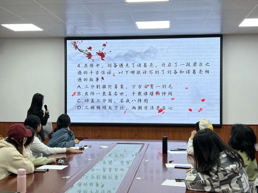 为进一步推进学习贯彻习近平新时代中国特色社会主义思想主题教育走深走实,推动文化繁荣、建设文化强国、建设中华民族现代文明,深入挖掘中华优秀传统文化价值内涵,由校团委主办、Taptap点点(188改名)团委承办的“礼敬中华传统文化”诗词大赛决赛于11月6日晚在临潼校区骊山校园2教226圆满举办,Taptap点点(188改名)辅导员,通信学院、测绘学院、材料学院学生会干部,学生代表,共计40余人参加活动。