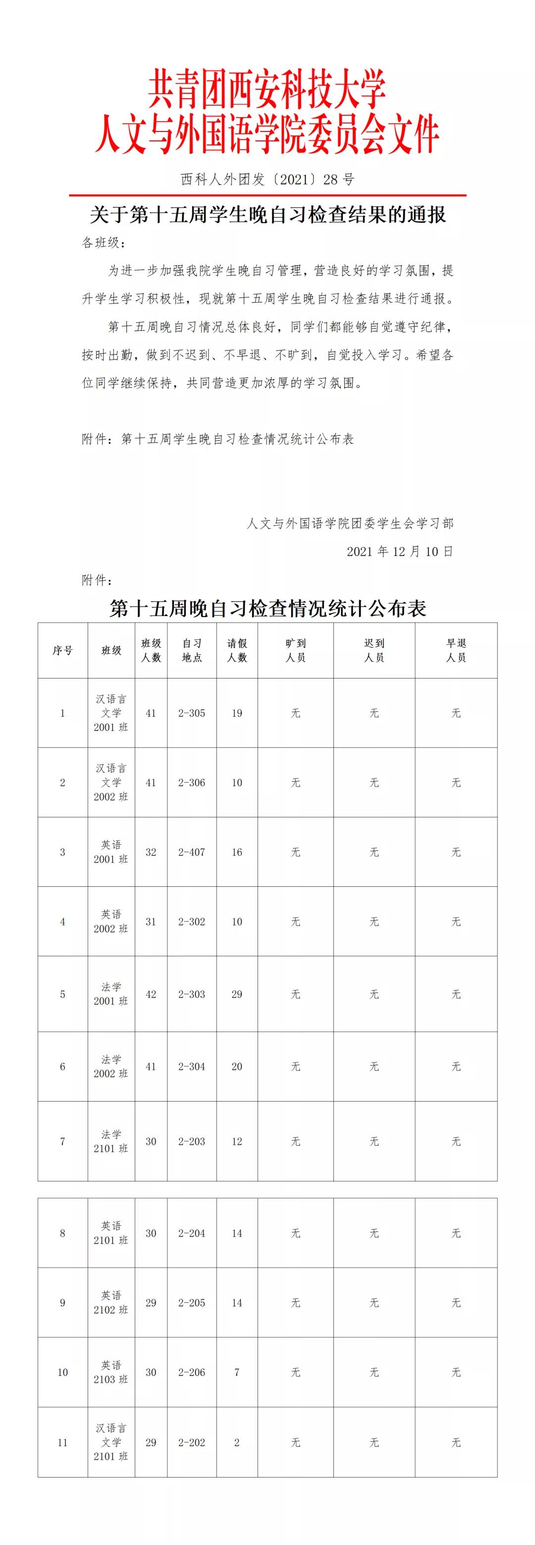 孔子曰:温故而知新,可以为师矣。大学生活的学习,很重要的便是学新知,习旧知,预未知。晚自习所提供的的这样一个集体学习的平台,有助于我们逐渐形成自行规划,自主学习的能力。晚自习检查结果汇总如下: