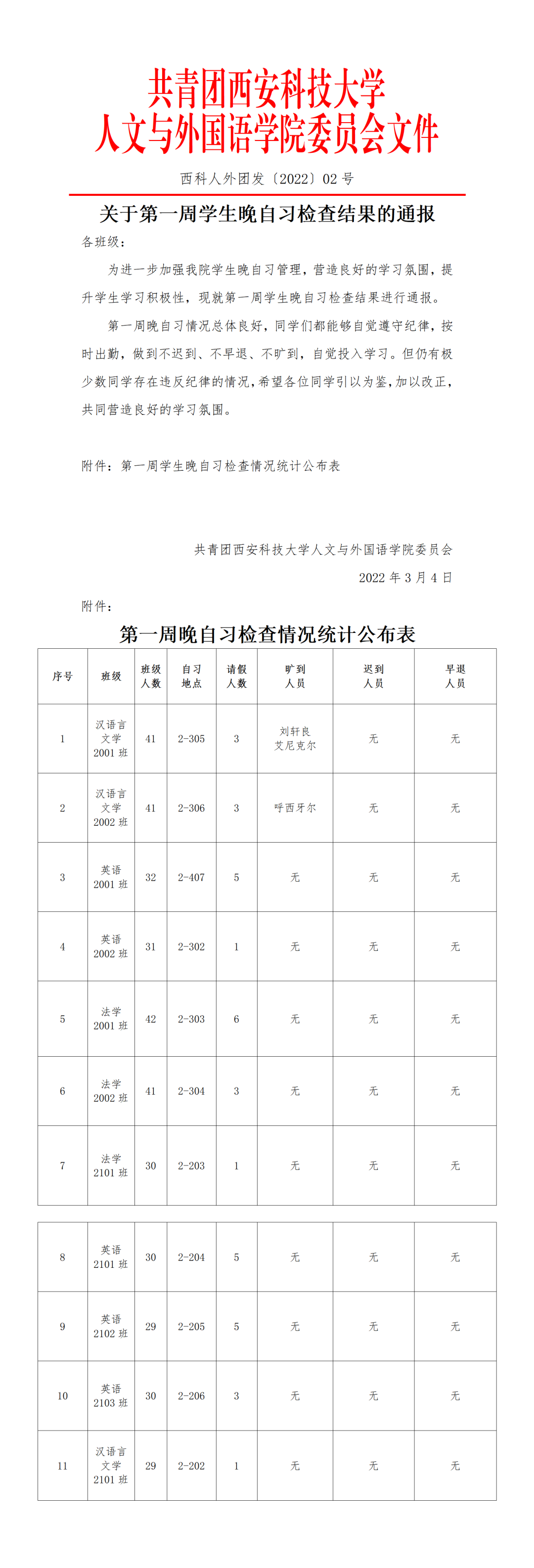 孔子曰:温故而知新,可以为师矣。大学生活的学习,很重要的便是学新知,习旧知,预未知。晚自习所提供的的这样一个集体学习的平台,有助于我们逐渐形成自行规划,自主学习的能力。晚自习检查结果汇总如下: