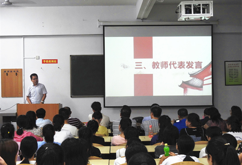 师新民最后讲话,表达了对2018级新同学的热烈欢迎和祝贺,并简要介绍了学校发展概况和学院师资队伍、科学研究、学生工作等相关内容,希望大家在今后处理好通识教育与专业教育、课内教育与课外教育、共性教育与个性教育等三个关系,多读书、懂感情、重集体、爱国家,丰富大学生活,铸就人格魅力,培养思辨能力和批判精神,强化独立见解和解决问题的能力。