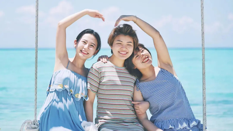 在马来西亚美人鱼岛和朋友们一起(左一为常青)