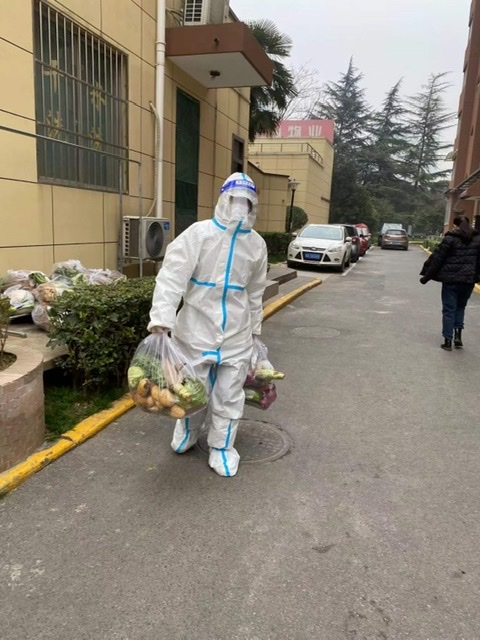 英语系于凡自高新区封控以来,就主动申请加入高科花园的志愿者团队。在小区十余天的封控期间,于凡所在的志愿者团队和小区物业人员一起,组织小区19栋楼的2000余住户进行了多次核酸检测,冒着严寒将政府的救援物资连夜发放到每一位住户手中,为了避免漏检还爬楼梯挨家挨户核对核酸检测信息,为小区的疫情防控和生活保障做出了贡献。