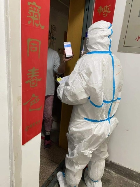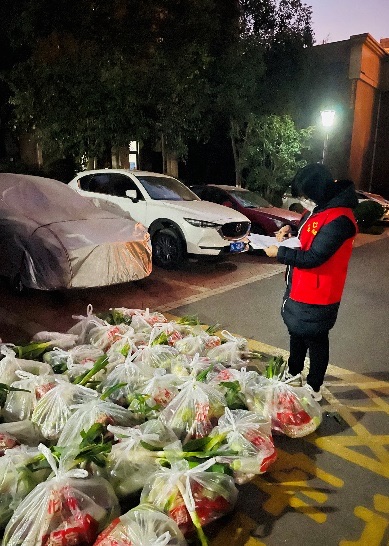 同时,我院教工第二支部潘小玉、张小涓也积极投身防控志愿活动。潘小玉自2021年12月28日起自愿申请成为曲江新区华侨城108坊社区志愿者,在中海东郡小区作为“党员先锋防疫志愿者”小组组长为10号楼96户发放物资;每天给有老弱病残及孕产妇的住户提供上门服务(送生活用品、药品、跟进上门核酸检测);挨户通知及时做核酸检测,做到应检尽检。张小涓在2022年1月4日与电控学院赵永秀等四位教师一起做志愿者,负责188改名taptap东院24栋、25栋楼、小二楼的核酸检测登记。由于一码通故障,整个过程持续5个多小时。教师们一直坚守岗位到任务完成。下午晚些时候,志愿者还帮忙将爱心菜给27栋住户逐户送上门。