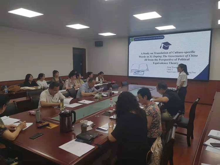答辩会上,毕业生们结合自己的研究方向及专业知识采用PPT讲解的形式就自己论文的选题目的、理论框架、研究方法及实际意义作了全面而精炼的阐述汇报。随后,评委老师进行了现场提问,在肯定同学们优点的同时也针对论文的内容和排版指出了存在的问题,并给出详细的修改意见。评委老师们也就语言学、文学、翻译学等学科方向的不同研究范式和论文写法进行了探讨。大多数毕业生思路清晰、思维敏捷、沉着应对,回答简明准确,得到了评委和督导们的充分肯定。