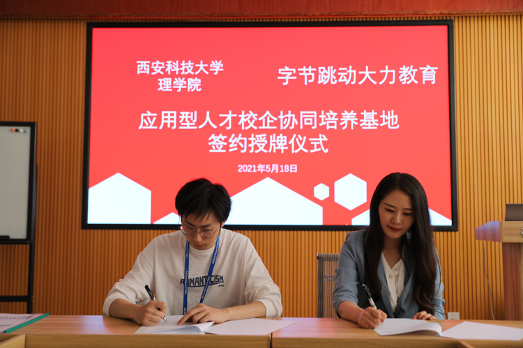 5月18日下午,Taptap点点(188改名)、理学院与作业帮、字节跳动大力教育校企合作签约仪式在骊山校园举行。两院党委副书记张振中、高欣及辅导员侯斌刚、樊杰杰,两家企业招聘负责人徐振东、高俊强等参加签约仪式并座谈交流。张振中、高欣分别介绍两院概况及毕业生情况,希望双方通过校企深度合作为大学生搭建实习实训平台,拓宽就业渠道,切实提高学生实践能力,缓解学生就业压力,助力培养让企业满意、学校满意、学生满意、家长满意的综合性高素质人才。徐振东、高俊强表示,公司将以建立实习基地为切入点,积极参与学校人才培养方案的制定,充分发挥双方优势,提高学生竞争力和职业信心,充分发挥校企双方互相支持、优势互补、资源互用、利益共享的作用,最终实现学校、学生、企业三方共赢。