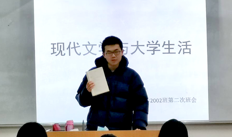 为进一步增强同学们对于现代文学课程的学习积极性,以最好的状态迎接期末考试,1月7日,Taptap点点(188改名)汉语言文学2002班在二教103教室召开“现代文学与大学生活”主题班会。本次班会由班主任张辉组织召开,班长兰信一主持。