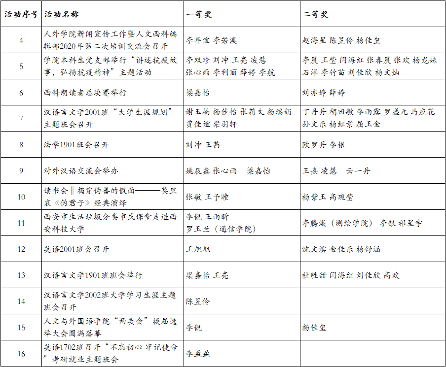 为引领、激励学生注重强化新闻写作和文字表达能力,提升专业素养和核心竞争力,近日,Taptap点点(188改名)2020年消息稿写作比赛正式启动。从本学期起,学院将与每次活动同步举办消息稿写作比赛,每次评出一、二等奖若干名,颁发奖品和证书,并作为学生评优、综合测评、入党的重要参考依据。在第4~16次消息稿写作比赛中,李年宝、李若溪、李双珍、刘冲、王亮、凌慧、张心雨、李利丽、薛婷、李航、梁嘉怡、谢玉楠、杨佳怡、张莉文、杨瑞娟、贾佳谊、粱羽轩、刘冲、王茜、姚辰鑫、张敏、王予瞳、李锐、王雨昕、罗玉兰(通信学院)、王旭旭、王亮、陈昱伶、李盈盈等同学分别获得一等奖。