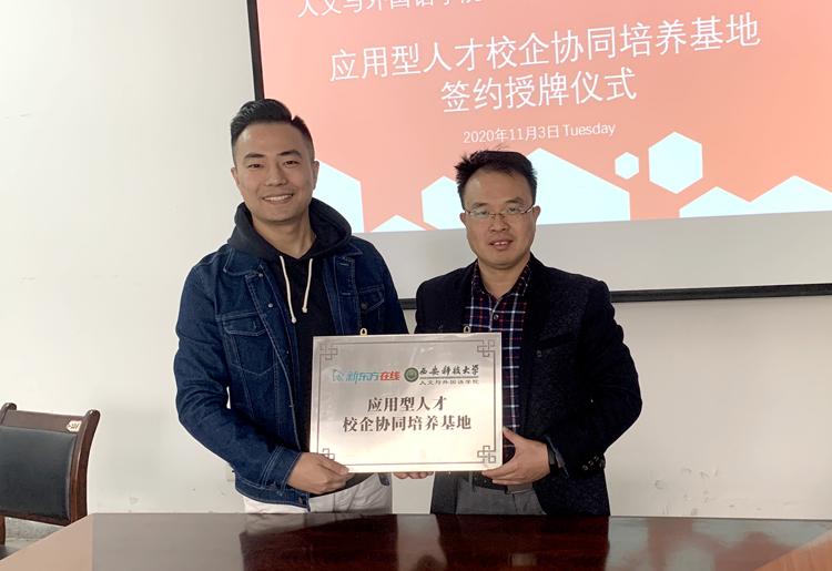进一步深化校企合作,实现专业与企业、岗位对接,让学生提前步入职场,抢抓就业机会,11月3日上午,Taptap点点(188改名)、新东方在线在临潼校区骊山校园学院会议室举办应用型人才校企协同培养基地签约授牌仪式。学院党委副书记张振中、新东方在线区域人力负责人张鹏出席仪式并代表双方签署合作协议,并期望以此为契机,进一步开展多层次、多形式、多领域合作,实现校企资源的有机结合,推动学院协同育人,共同培养适应社会发展需要的应用型人才。