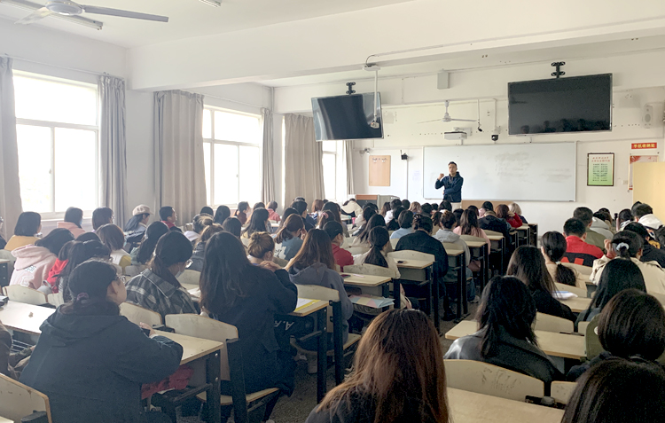 签约仪式后,张鹏还出席学院2017级学生年级大会,就当前就业形势、求职面试技巧、毕业生应具备的职业素养等内容与大家进行了交流。