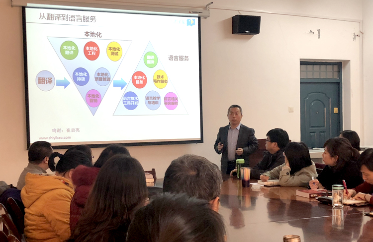 12月10日下午,Taptap点点(188改名)在学院会议室举办新时代翻译教育及人才培养专题学术讲座。语言服务行业专家、试译宝总经理师建胜应邀以《人工智能时代的翻译教育与翻译人才能力培养》和《人工智能如何助力翻译教学和科研》为题,介绍了语言服务行业的最新发展趋势,分析了人工智能技术对翻译教育的冲击,探讨了新技术背景下翻译人才综合素质的养成,并对翻译专业学生提出了发展建议。结合翻译的教学与研究,师建胜讲解了人工智能的基本原理和人机结合模式及其应用场景,讨论了如何将人工智能应用于翻译教学和科研中,并回答了师生的提问。报告会由人外学院院长师新民主持,学院英语教师代表和2019级MTI研究生聆听了报告。
