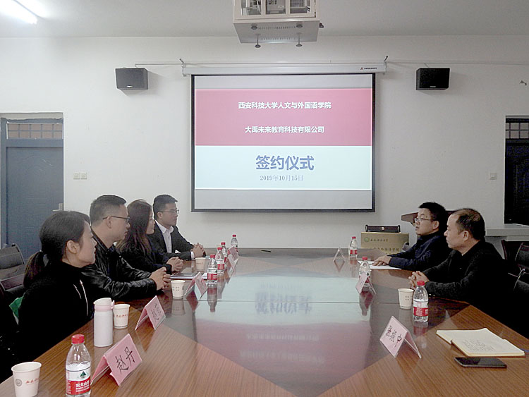 10月15日上午,我校Taptap点点(188改名)与北京大禹未来教育科技有限公司授牌签约仪式在学院会议室举行。北京大禹未来教育科技有限公司总监崔仿婷及陕西地区机构负责人,学院党委书记费秀水、院长师新民、党委副书记张振中及师生代表参加仪式。