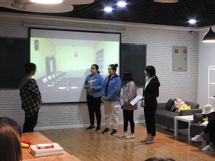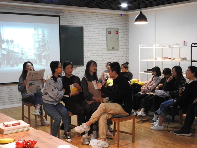 第一组“如来佛”组以短篇小说《靠不住的手》为例来阐明赵树理质朴的文学风格,通过借用不同时代的文学家、评论家对赵树理的评价,结合自己的阅读和分析,对赵树理的风格进行较为深入的解剖。第二组“七零大街”组以情景剧《浪潮起伏中的赵树理》展现了赵树理的人生历程,并对赵树理的创作方向、风格、特征进行了分析和介绍。第三组“老来俏”组以话剧的形式演绎了茅盾的作品《子夜》中吴老太爷到上海的情景片段,通过对《子夜》中“浪漫”与“颓废”元素的探究,结合相关书目的评价,深入分析《子夜》作品风格和人物特色。第四组“香草美人”组通过展现茅盾作品中不同的女性形象进而剖析茅盾文学中的时代女性特征。第五组“五颜组”通过演绎郭沫若的话剧《棠棣之花》解读郭沫若历史剧中的人物形象特征。最后由现场同学和教师根据五个小组的现场表现投票,评选出“五颜组”为优胜组。