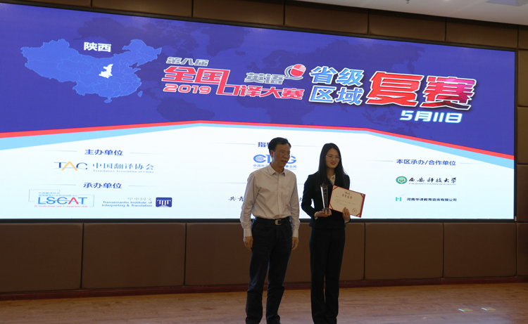 比赛采用交替传译形式,分为预赛和决赛两个环节。预赛为英译汉淘汰赛,决赛为汉译英排位赛。选手们沉着冷静,围绕“虫洞”赛题展开,用简洁而准确的词汇将文本内容表达出来,翻译各有特色,展现了扎实娴熟的口译技能,给现场评委、观众留下了深刻的印象。 经过激烈的角逐,西安外国语大学谌业欣获“口译之星”,西北农林科技大学曹欣悦、西北大学白昕可获得一等奖,陕西师范大学孙廉咪等7人获得二等奖,我校选手、英语1601班郭欢喜等30人获得三等奖,张梦原等23人获得指导老师奖。