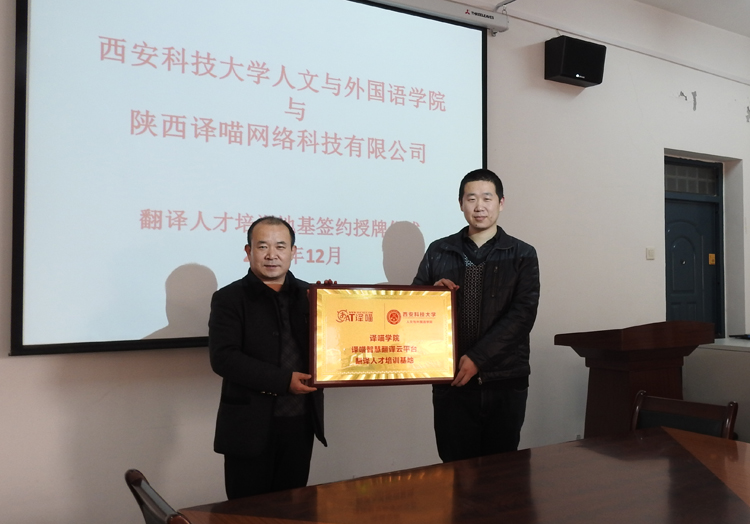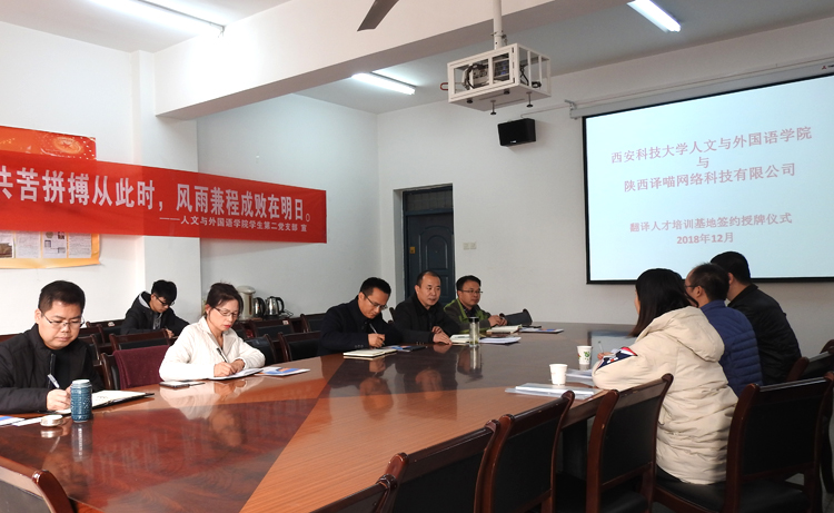 仪式上,师新民致欢迎词,简要介绍了学院发展概况及MTI建设情况,充分肯定了译喵网络科技有限公司的实力,希望双方能够在MTI师资建设、实践型创新型人才培养、学生实习实训等方面开展广泛深入的合作,实现校企共赢。王潇轩介绍了公司的基本情况、开展的业务以及技术支持等内容,希望通过合作把公司的优质平台、技术和资源带到学校,为学院的MTI建设、高素质实践创新型人才培养提供有力的技术支持。双方还就实验室及语料库建设、翻译辅助教学平台搭建、教师工程实践能力锻炼等方面进行了深入探讨。