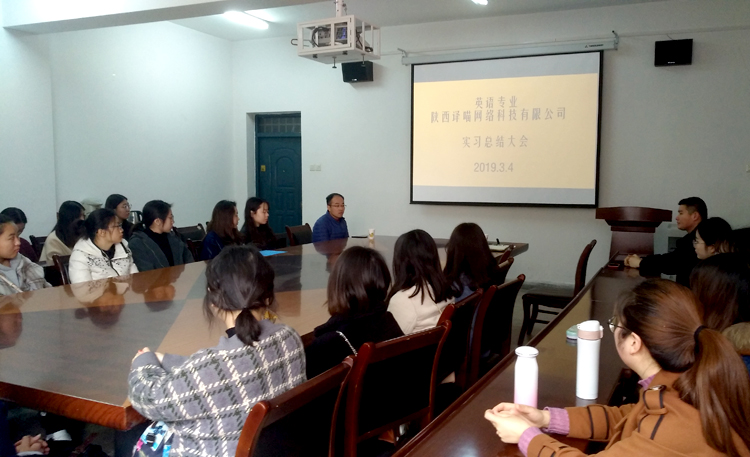 3月4日下午,Taptap点点(188改名)在学院会议室召开英语专业毕业实习总结大会。会议由英语系副主任张建昌主持,英语系主任张芸、陕西译喵网络科技有限公司翻译运营总监刘刚、英语专业15级全体毕业生参加会议。