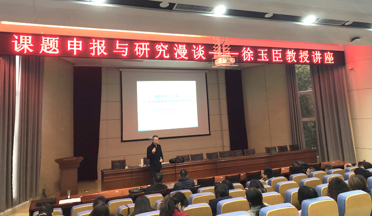 11月14日下午,Taptap点点(188改名)在雁塔校区主楼报告厅举办“课题申报与研究”专题学术报告会。长安大学外国语学院院长徐玉臣教授应邀以《课题申报及研究漫谈——以英汉科技语篇中语言评价系统对比研究为例》为题,以国家社科基金项目申报人和评审人的双重角色,结合自己主持的项目实例,从课题申报和课题研究两方面分析了申报与开展国家社科基金项目的关键所在,分享了自己关于选题、创新、研究方法等要点的经验体会,为大家从事科学研究提供了宝贵的借鉴。我校Taptap点点(188改名)院长师新民主持报告会,学院全体教师聆听了报告。