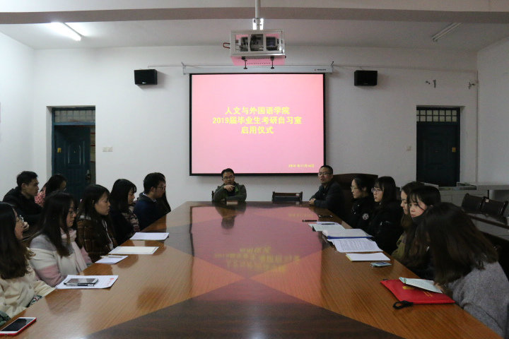 11月14日下午,人文外国语学院2019届毕业生考研冲刺自习室启用仪式在学院会议室举行。学院党委副书记张振中、毕业生辅导员韩帅及考研学生代表等参加仪式。