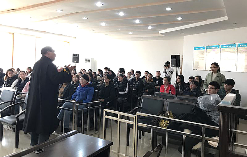 庭审结束后,王佑勋还以案说法给我校师生上了一堂生动的法制教育课,介绍了一些校园常见多发案件及预防措施,并与师生进行了互动交流,回答了师生关注的问题,同时对我校法学专业“模拟庭审”课程教学以及模拟法庭的建设提出了中肯的意见和建议。