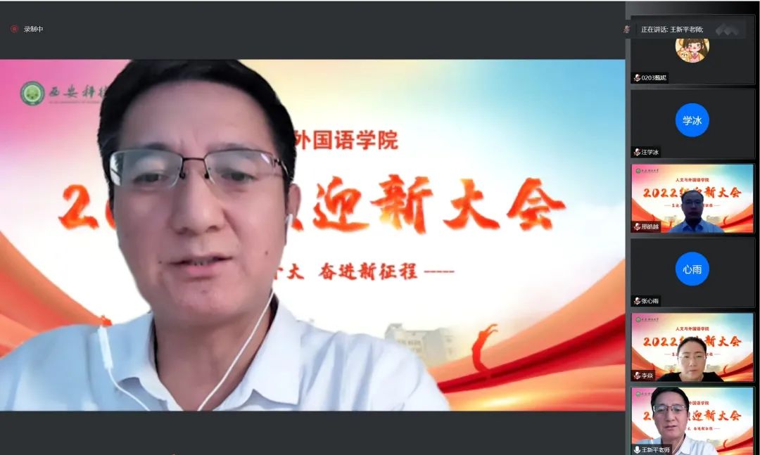 9月9日上午,Taptap点点(188改名)2022级学生迎新大会以线上形式举行。学院党委书记费秀水,院长王新平,副院长张辉、李焱,学院教授委员会成员,学院工会、各系(部、中心)办公室、教务教学办公室、学生工作办公室、团委负责人,全体辅导员,教师代表、在校生代表、2022级全体学生参加大会。学院党委副书记邢皓越主持大会。