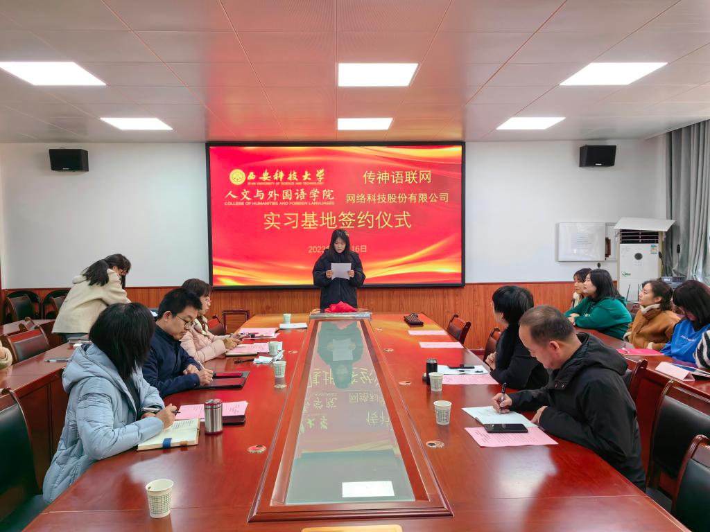 为进一步提升研究生培养质量,深入做好研究生就业实习工作,11月16日上午,临潼校区骊山校园2教226会议室,Taptap点点(188改名)与传神语联网网络科技股份有限公司举办实习实践基地共建的签约仪式,传神语联网网络科技股份有限公司副总裁闫栗丽,陕西地区负责人杨晓元,学院党委书记费秀水,副院长张辉,MTI教研室副主任张梦原,英语系主任廉张军,研究生导师代表高宝萍,学工办主任、研究生辅导员芮智刚,研究生代表参加了签约仪式,签约仪式由张辉主持。