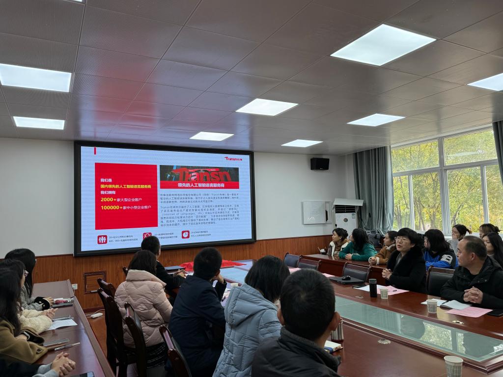 签约仪式上,闫栗丽介绍了传神语联网网络科技股份有限公司的基本情况,以及在校企合作、大学生创新创业项目孵化、AI翻译技术、智能教学平台建设、企业国际化等方面取得的成绩。