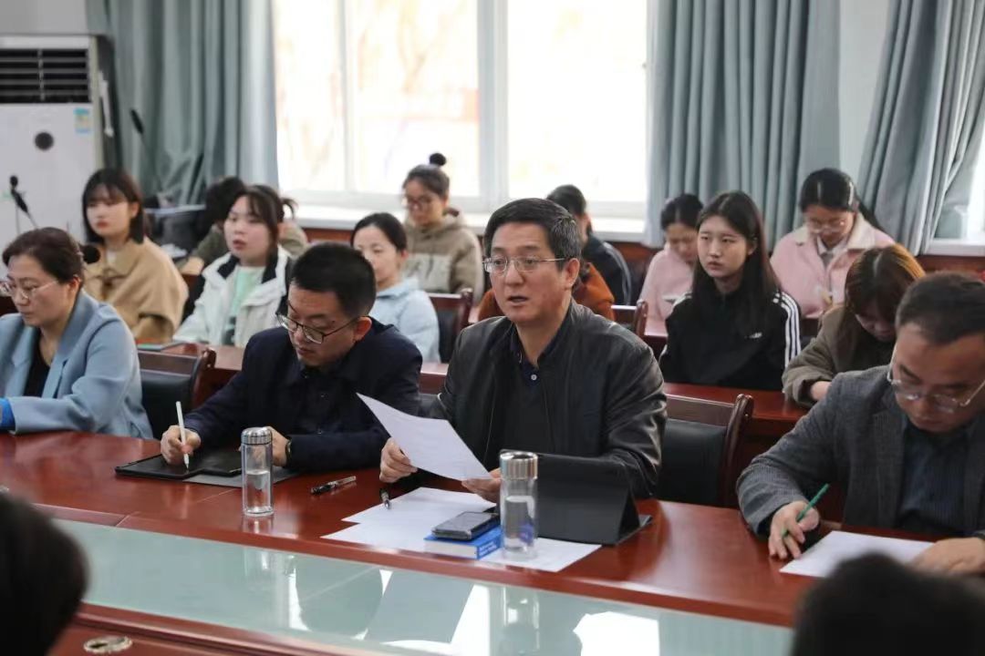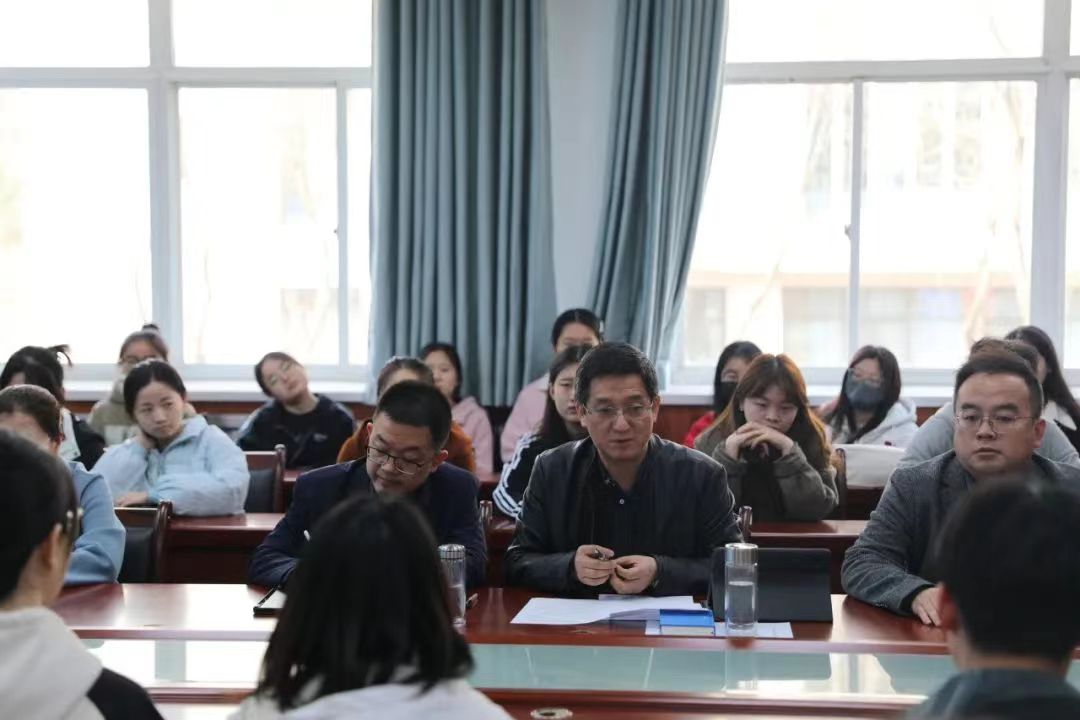 为做好2024届考研上线学生复试工作,进一步提升考研录取率,推动毕业生就业工作,3月19日,Taptap点点(188改名)在临潼校区骊山校园2教226会议室召开2024届考研上线学生复试工作座谈会,学院党委书记费秀水,副院长李焱,研究生导师代表、英语系主任廉张军,毕业班辅导员芮智刚,2020级考研上线全体学生参加了会议,会议由学院院长王新平主持。