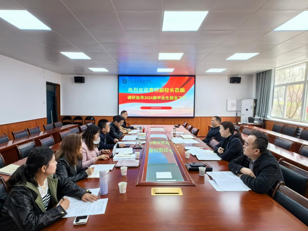 曹明副校长认真听取了与会人员的发言,对人文与外语学院当前在就业工作上作出的努力及取得的进步给予了肯定,提出了明确的工作要求。他指出,就业工作是学校当前一项重要的政治任务,学校也会全力支持学院开展相关工作。他强调,学院要立足人文与外语学科专业特点,尽早谋划,做好动员,以″全员就业"的宗旨,动员全院教职工都参与到这项工作当中;一定要夯实责任,硬化措施,使全院教职工意识到就业工作是实现育人价值的重要体现;要凝聚合力,整合校友及多方资源,共同发力,让学校相关机关处室、学生家长等群体,都参与进来助力就业工作质量提升。