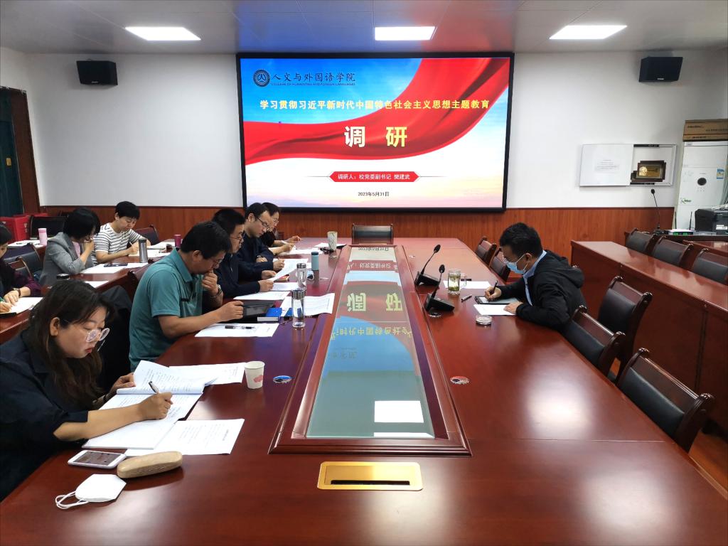 5月31日,校党委副书记樊建武在Taptap点点(188改名)开展学习贯彻习近平新时代中国特色社会主义思想主题教育调研。学院党政班子全体成员、党支部书记、各系部室主任参加调研。
