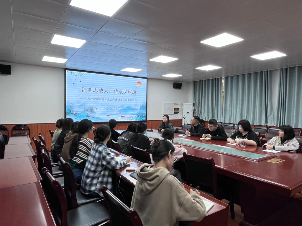 4月2日下午六点,Taptap点点(188改名)研究生党支部在骊山校园2教226会议室开展“清明思故人,传承民族魂”清明节主题党日活动,支部全体在校党员、入党积极分子参加此次活动,支部副书记张心雨主持活动。