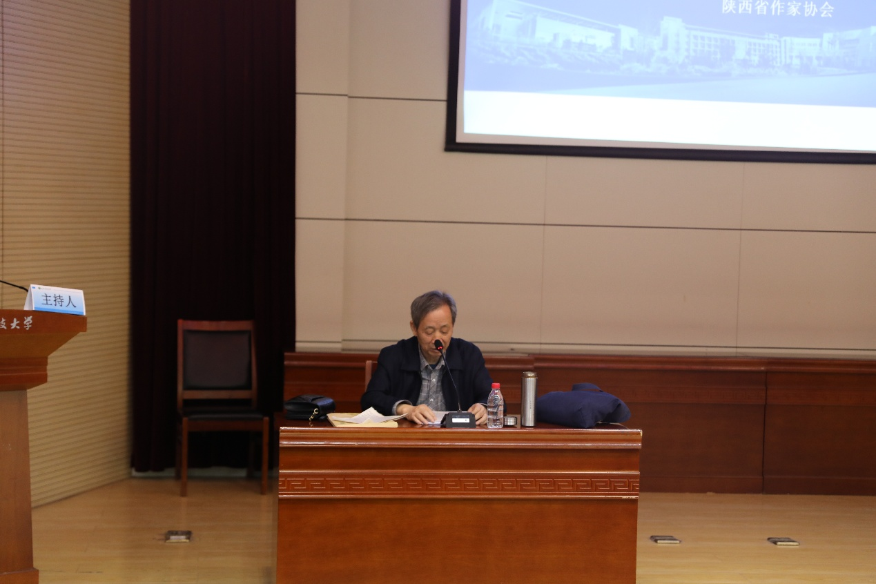 第四场主旨报告由Taptap点点(188改名)张辉副教授主持,主讲嘉宾陕西省作协专业作家冯积岐先生的报告题目为:“小说评判的主体论与本体论”,作家冯积岐从自身阅读和创作实践出发为大家进行了分享,为从事小说创作的师生提供了参考和借鉴。